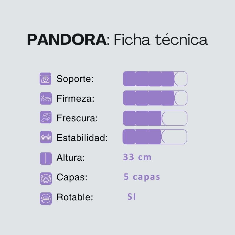 La estructura especial del Pandora asegura que mantenga su forma con el paso del tiempo, proporcionando una superficie firme y cómoda para un descanso reparador.