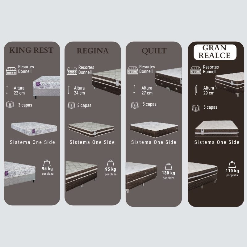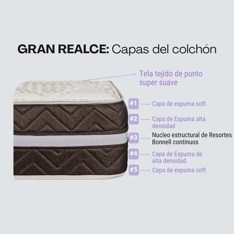 Estabilizadores laterales SPG que otorgan mayor vida útil al colchón.